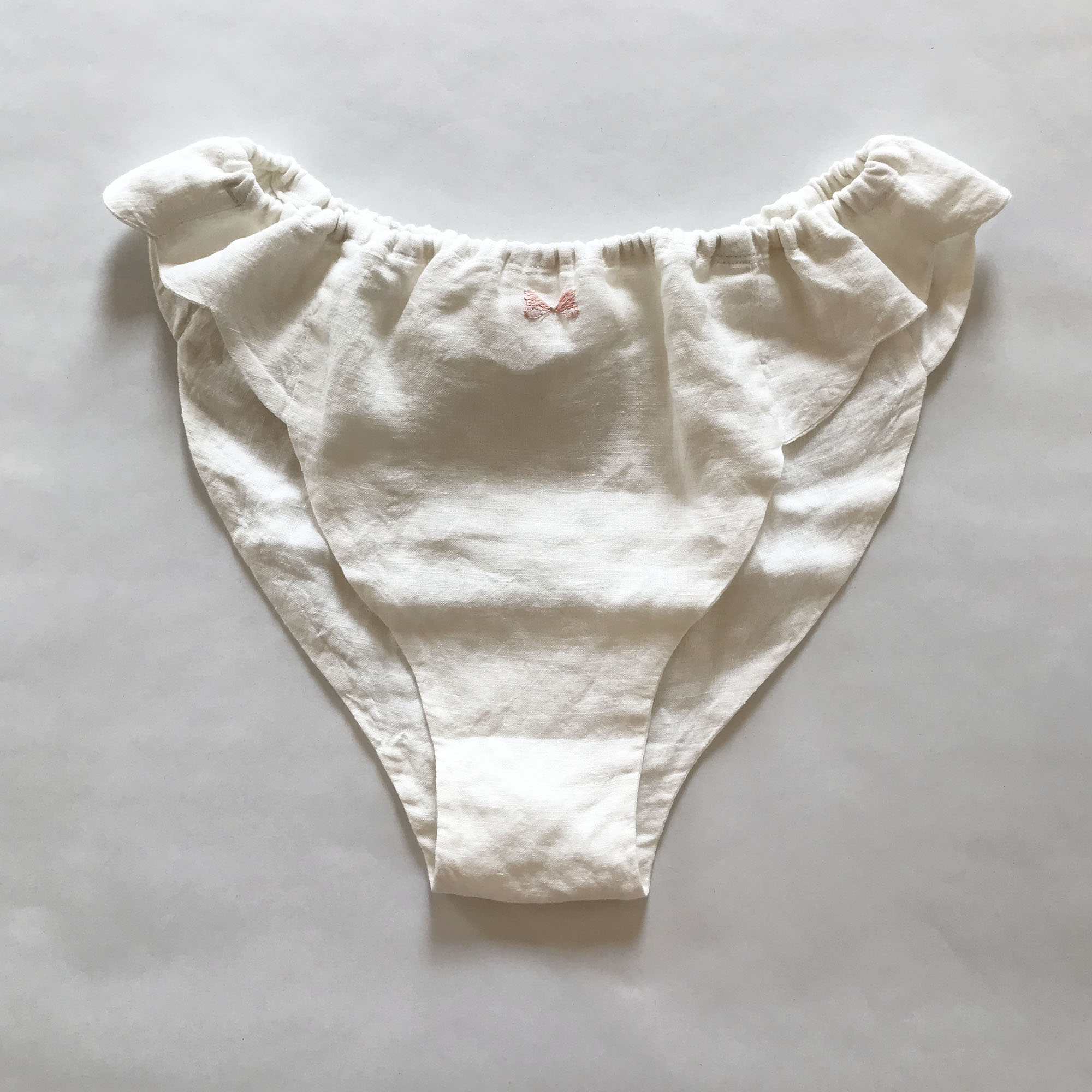 ファンシーパンツ(ふんどしパンツ) リネン+刺繍 オフホワイトxフラミンゴ【inemuri】pt_yy02