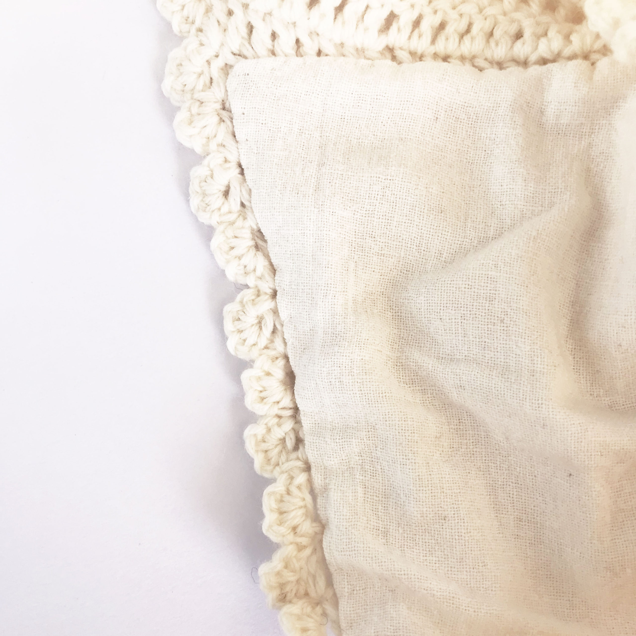 - 本体:前見頃 ウールとアクリル(赤ちゃん用の毛糸で制電アクリルをブレンド いやなパチパチがなく肌に安心) 後ろ身頃 ウール 100%